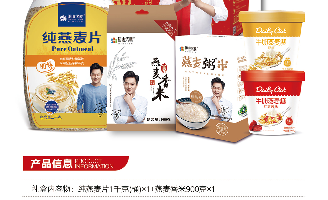 禮盒裝:純燕麥片、燕麥香米、燕麥粥米、牛奶燕麥餐(原味、紅棗味)