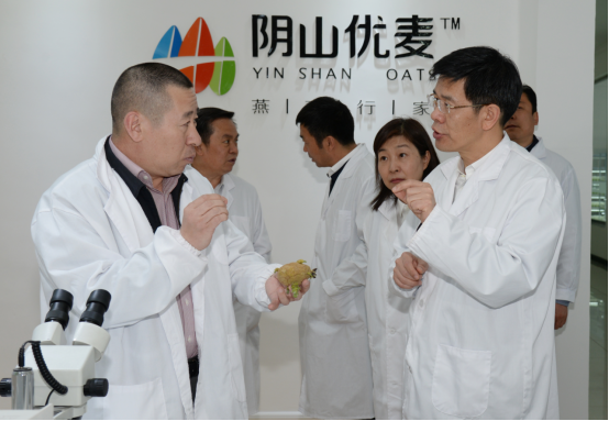 民豐種業(yè)董事長盧文兵對公司近年來的發(fā)展情況以及企業(yè)三產(chǎn)融合的實(shí)施布局情況向黃志強(qiáng)副主席進(jìn)行了詳細(xì)的匯報。近幾年,民豐種業(yè)已發(fā)展成為中國集馬鈴薯、燕麥研發(fā)、種子生產(chǎn)、分級加工、物流倉儲、推廣銷售于一體的現(xiàn)代化農(nóng)業(yè)企業(yè),是農(nóng)業(yè)產(chǎn)業(yè)化國家重點(diǎn)龍頭企業(yè)、國家高新技術(shù)企業(yè)、自治區(qū)扶貧龍頭企業(yè)。子公司陰山優(yōu)麥已發(fā)展成為中國燕麥深加工企業(yè),是自治區(qū)農(nóng)業(yè)產(chǎn)業(yè)化重點(diǎn)龍頭企業(yè)和自治區(qū)扶貧龍頭企業(yè),所生產(chǎn)的燕麥米、燕麥片、燕麥餐杯、燕麥高纖素等燕麥?zhǔn)称蜂N往全國二十多個省市,成為百姓餐桌上的大健康食品。子公司蒙薯食品“年產(chǎn)8000噸低溫油炸薯?xiàng)l、2000噸胡蘿卜脆片加工項(xiàng)目”也將于今年投產(chǎn)。