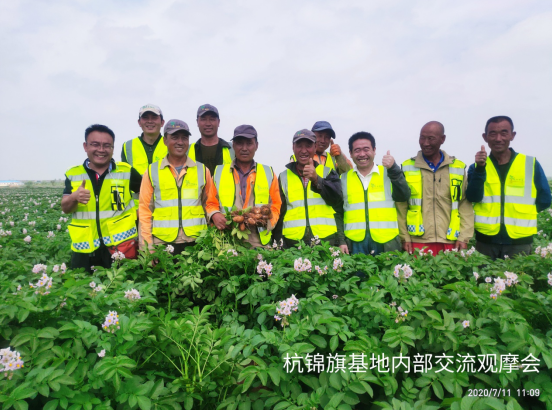 (通訊員 宋江江)2020年7月11日,民豐種業(yè)杭錦旗農(nóng)場組織開展內(nèi)部觀摩交流活動?;顒佑纱髤^(qū)經(jīng)理、農(nóng)藝師、管理員、基地經(jīng)理、機手等13人參加,在大區(qū)經(jīng)理門大偉的帶領(lǐng)下大家對各地塊馬鈴薯問題進(jìn)行的探討、研究,針對各基地問題做到早發(fā)現(xiàn),早溝通,早預(yù)防,就重大問題進(jìn)行立項研討并提出改進(jìn)方案及措施。同時,對管理成就突出的地塊進(jìn)行現(xiàn)場學(xué)習(xí),共享田間管理方面、經(jīng)驗及做法。