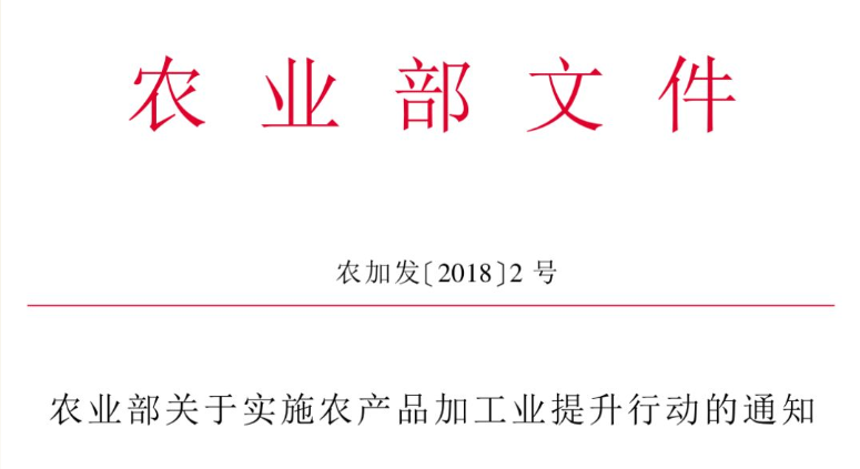 為深入貫徹黨的十九大精神,實(shí)施鄉(xiāng)村振興戰(zhàn)略,根據(jù)《中共中央國務(wù)院關(guān)于實(shí)施鄉(xiāng)村振興戰(zhàn)略的意見》和《國務(wù)院辦公廳關(guān)于進(jìn)一步促進(jìn)農(nóng)產(chǎn)品加工業(yè)發(fā)展的意見》(國辦發(fā)〔2016〕93號)要求,進(jìn)一步推動(dòng)我國農(nóng)產(chǎn)品加工業(yè)轉(zhuǎn)型升級,促進(jìn)農(nóng)業(yè)農(nóng)村經(jīng)濟(jì)高質(zhì)量發(fā)展,為鄉(xiāng)村振興提供新動(dòng)能,農(nóng)業(yè)部決定啟動(dòng)實(shí)施農(nóng)產(chǎn)品加工業(yè)提升行動(dòng)?,F(xiàn)將有關(guān)事項(xiàng)通知如下。